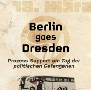 Am 18.März, dem Tag des politischen Gefangenen, wird es eine Bustour nach Dresden geben. Dort werden 7 Antifaschist*innen wegen Unterstützung bzw. Mitgliedschaft in einer kriminellen Vereinigung (§129) angeklagt.
