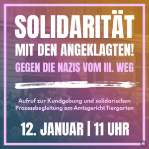 Im Dezember standen dann nur noch unerfreuliche Termine auf dem Plan. Zwei Antifas standen vor Gericht, weil sie bei uns im Bezirk von einem Nazi bei einer misslungenen Abstrafaktion lebensgefährlich verletzt wurden, aber die Staatsanwaltschaft nur sie anklagte. Zu den beiden Kundgebungen erschienen jeweils über hundert Antifaschist*innen. Weitere unterstützten im Gerichtssaal. Im selben Monat wurde eine Recherche zu Neonazis in Blankenburg veröffentlicht, die wir verbreiteten.