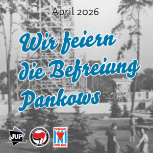 Im April und Mai fand unsere traditionelle Befreiungsreihe mit dem JUP und der VVN-BdA statt. Mit Lesungen, Rundgängen, Filmabenden und einer Kundgebung am Garbaty-Platz wurde einiges organisiert. Am ersten Mai-Wochende fand zudem der „Antifa – out of line“-Kongress des „Gegenform“-Bündnisses statt, dessen Teil wir waren. An drei Tagen kamen dabei hunderte Menschen ins FMP1 zu spannenden Workshops, Referaten und Podien.
